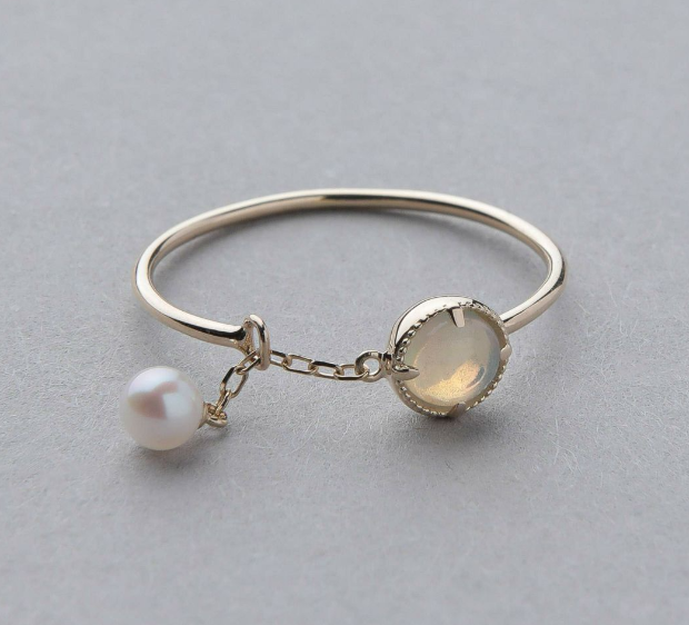 あこや真珠 オパールリング/ Akoya 珍珠蛋白石戒指