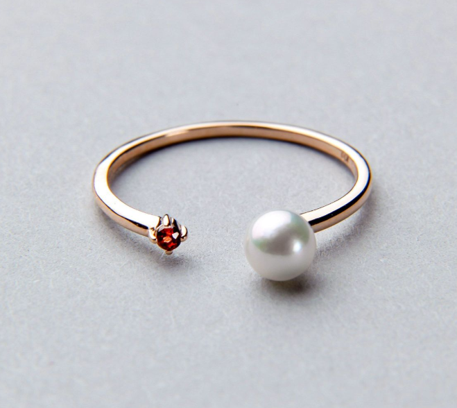 あこや真珠 リング ガーネット/Akoya 珍珠戒指 石榴石
