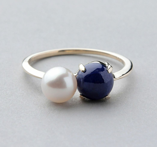 あこや真珠 サファイア リング/Akoya 珍珠蓝宝石戒指