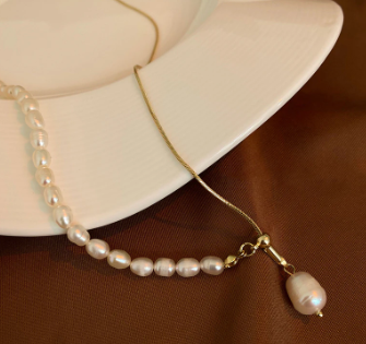 アシンメトリー淡水パール ネックレス ゴールド/不对称淡水珍珠项链 金色