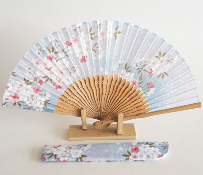 水色のグラデーションに桜が舞う扇子/淡蓝色渐变樱花飞舞的折扇