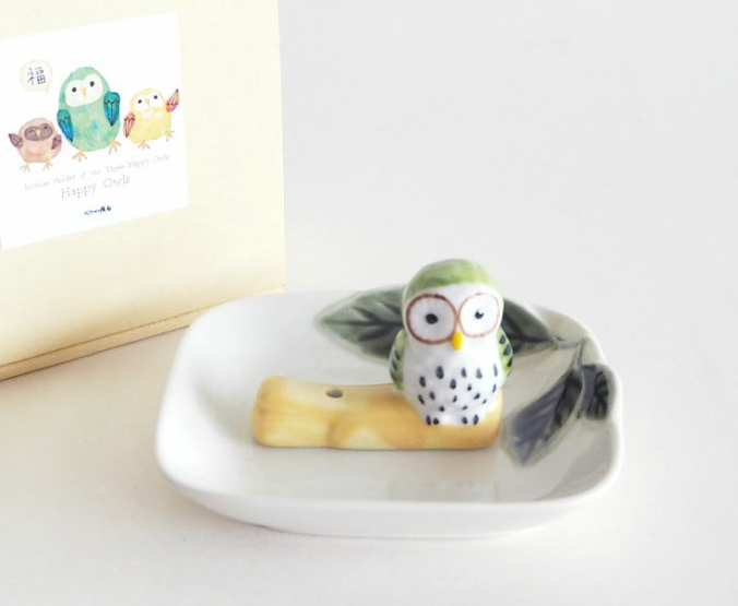 幸ふくろう 香立 グリーン/幸运猫头鹰香座 绿色